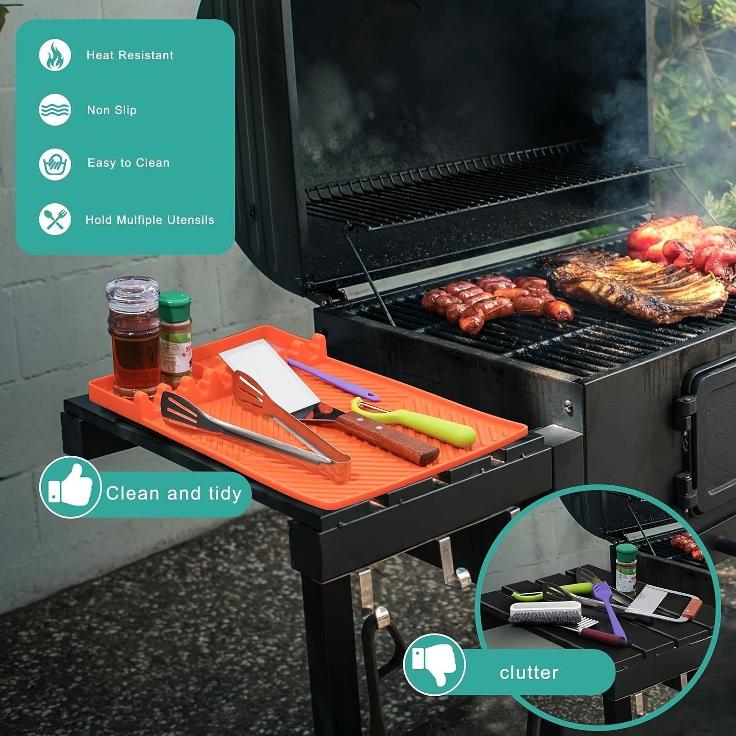 Silicone Grill Mat with Spatula Mat & BBQ Caddy
